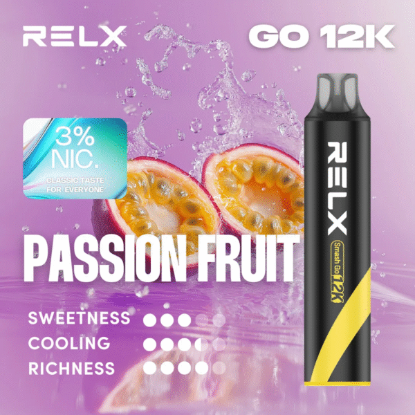 RELX Smash Go 12000口拋棄式電子煙 採用恆定輸出霧化技術,每一口皆保持穩定濃郁口感。大容量設計提供約 12,000口 續航體驗,搭配升級防漏結構與 Type-C 充電,開箱即用,無需補油或更換霧芯。百香金果 口味完美融合百香果的酸甜與熱帶水果的香氣,帶來層次豐富的味覺享受。現在就在  RELX 電子菸台灣在線購買商城  選購,體驗 RELX拋棄式電子菸 提供的頂級便利與品質!